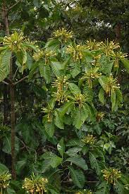 alternas, elípticas, de 5-21 cm × 1,2-9 cm, abrupto-acuminadas, y margen distal