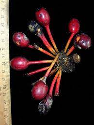 de 3-5 cm de diámetro, drupáceo, aplanado